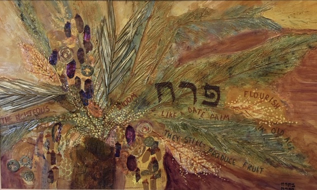 "Still Bearing Fruit" - 36X24 - Text: The righteous bloom like a date palm. . . flourish; in old age they still produce fruit. --Psalm 92:13-15