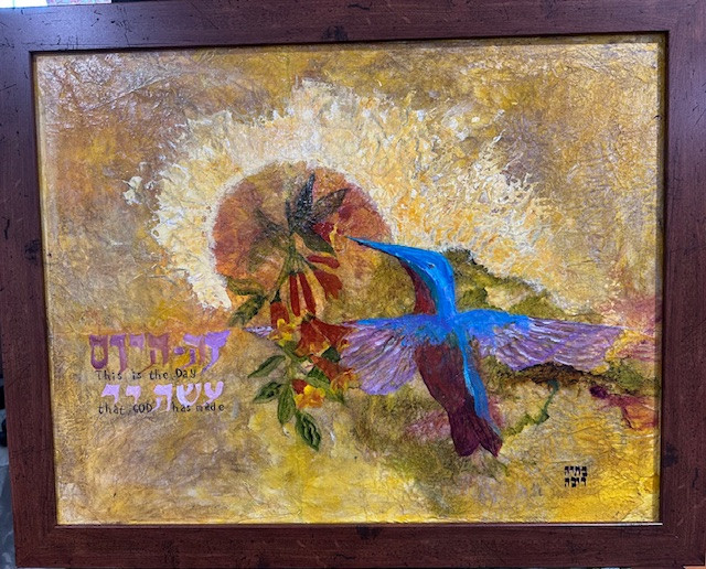 Text is in Hebrew (Zeh HaYom) and English, This is the Day.  From the Psalm that reads, "This is the day that God has made; let us rejoice and be glad in it."